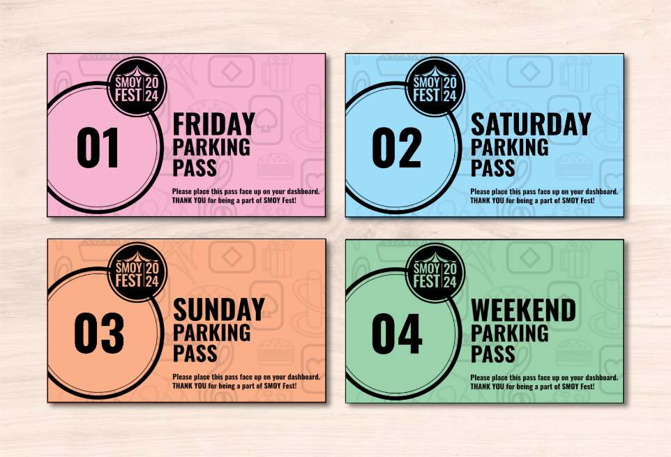 Refreshing the festival’s visual identity brought the opportunity to rethink the logistics of the passes. Instead of creating one pass design for the weekend to be handed off from person to person, I decided to create four different passes: Friday, Saturday, Sunday, and a pass valid for the entire weekend. Each pass was clearly labeled with the day it was valid for and the color changed for each pass type to make it easy to spot an invalid pass.