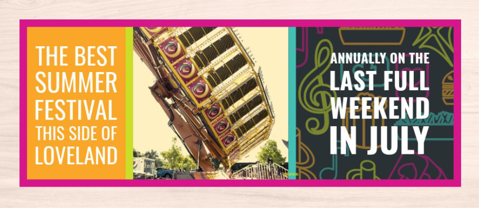 The first thing I did was list out all the assets we have preciously used in the past: logo, flyer, posters, parking passes, yard signs, etc. With all those things in mind I gathered inspiration from various community event and festival both big an small.