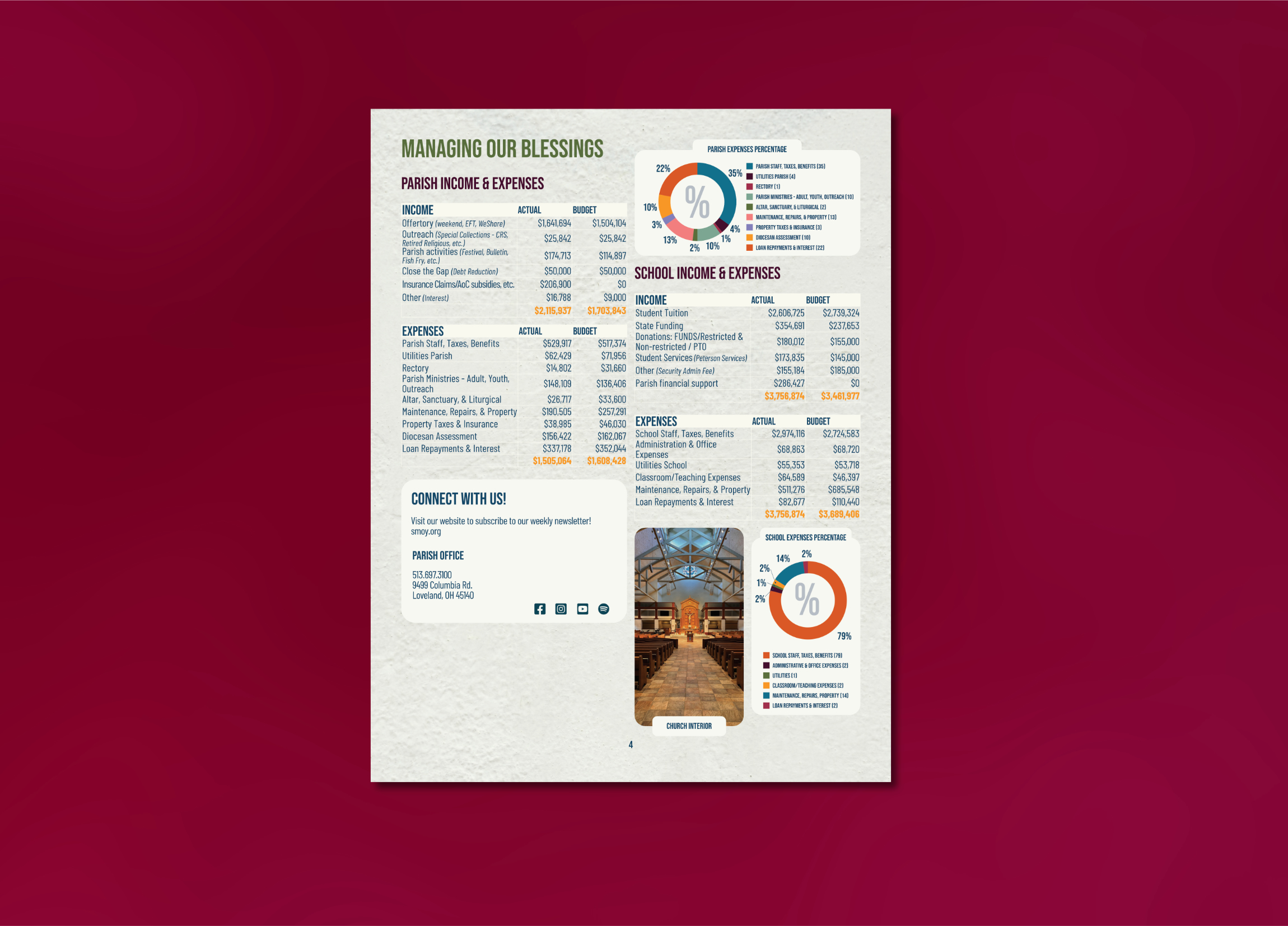 The annual State of the Parish report is a comprehensive summary provided by church leadership to inform parishioners primarily about the parish’s spiritual, financial, and operational status over the past fiscal year as well as highlight key achievements.