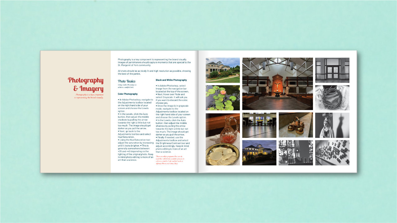 When I joined St. Margaret of York, the parish had a logo, letterhead, and business cards, but no cohesive brand system. Existing materials were inconsistent containing remnants of old identities and styles were still in circulation, creating a patchwork of mismatched puzzle pieces. Recognizing the need for a professional and unified visual identity, I took initiative to define and document guidelines covering typography, color, imagery, and layouts. I maintained all ongoing communications while developing the system, ensuring that daily operations were not disrupted while elevating the overall quality and consistency of parish communications.